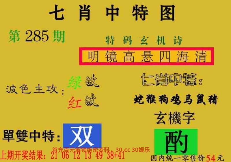 285期:特码玄机诗:明镜高悬四海清 |