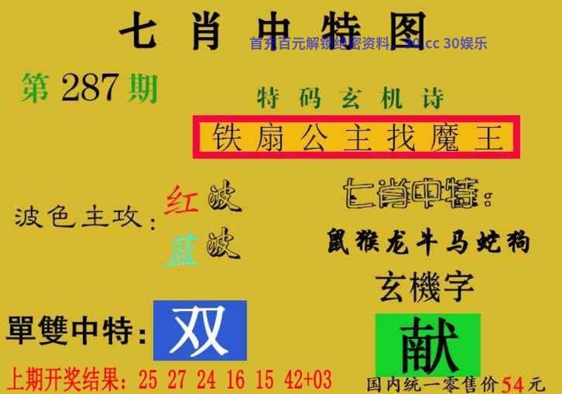 287期:特码玄机诗:铁扇公主找魔王 |